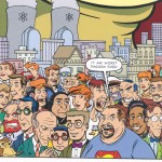 Krusty, el Sr. Burns, Otto, Flanders… Los personajes de la serie al estilo de los cómics americanos.